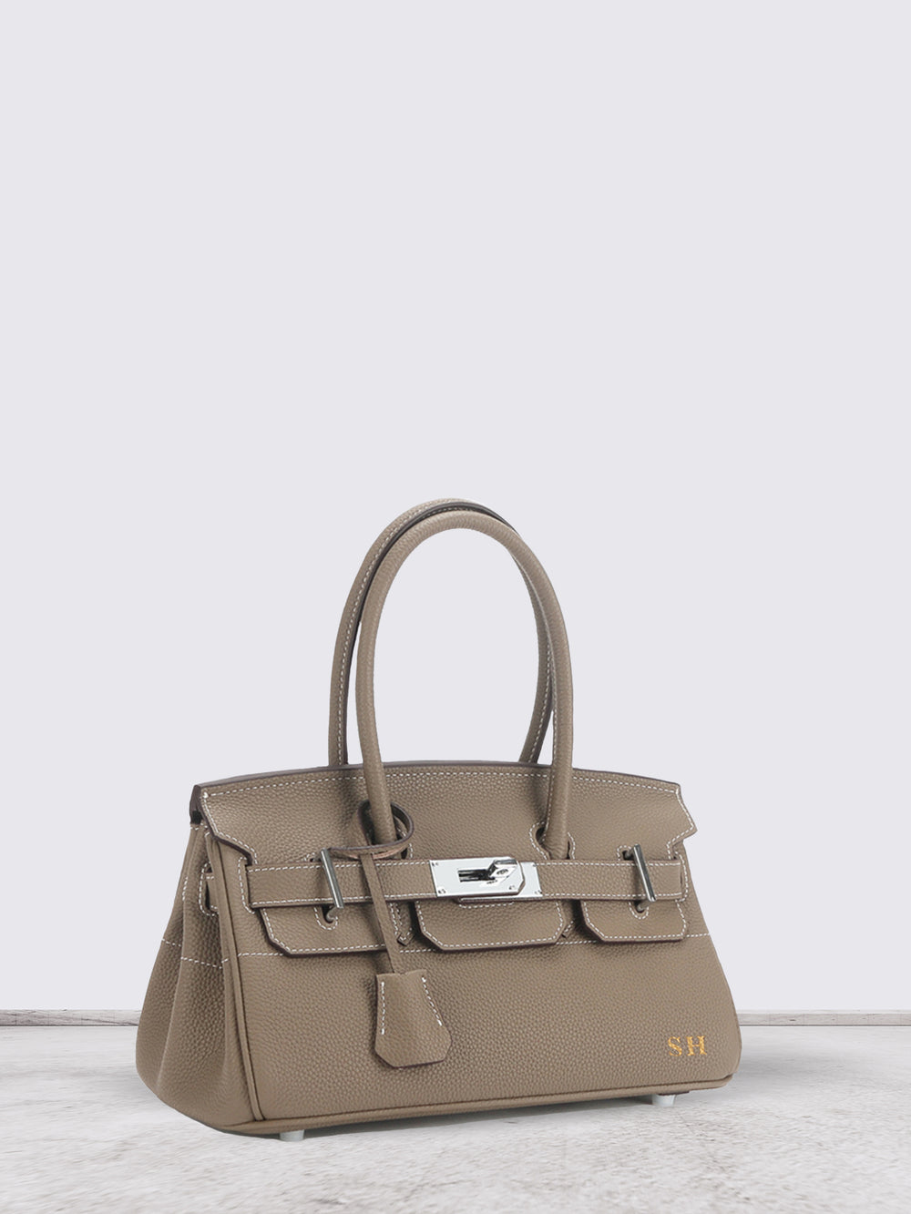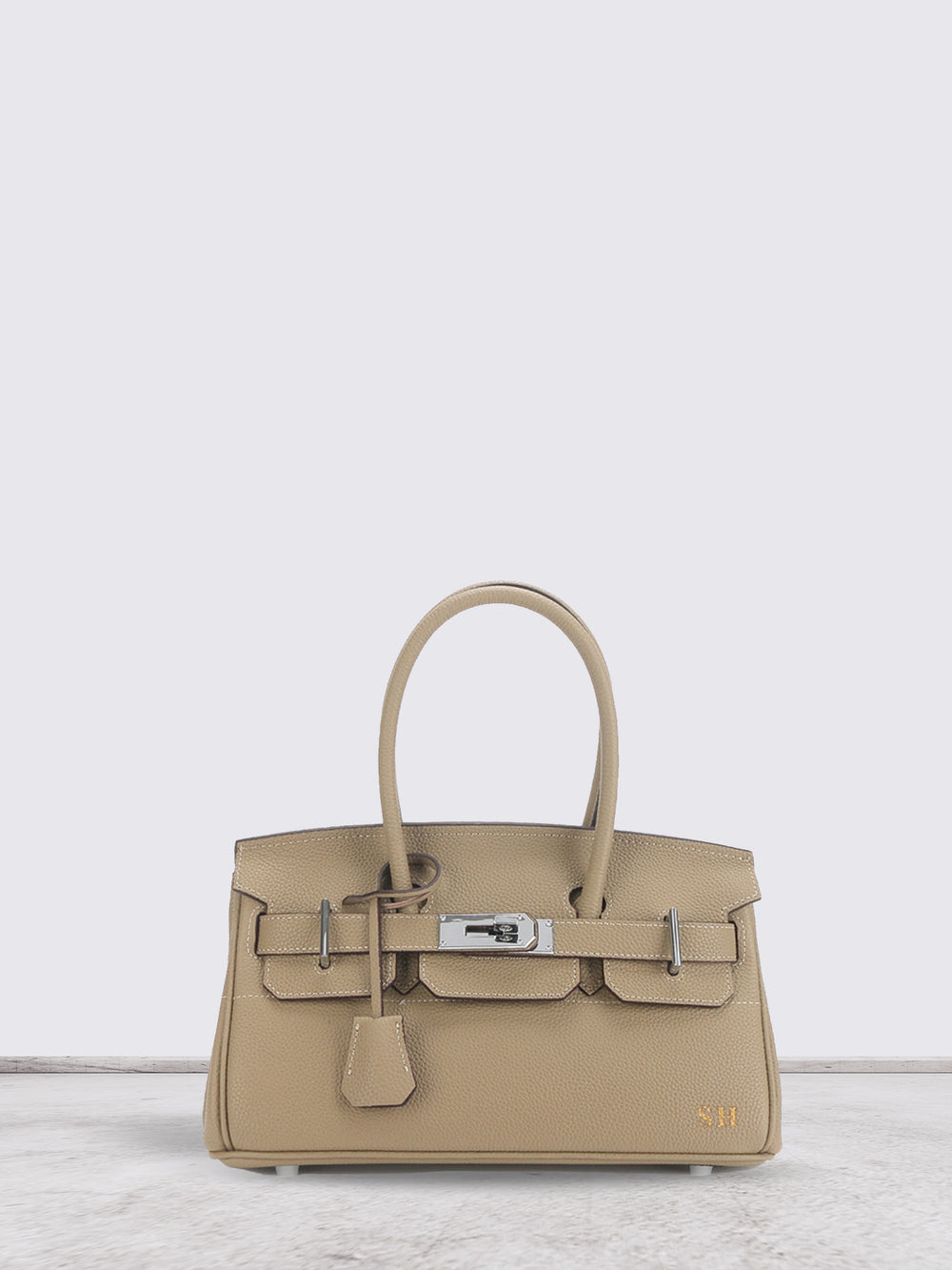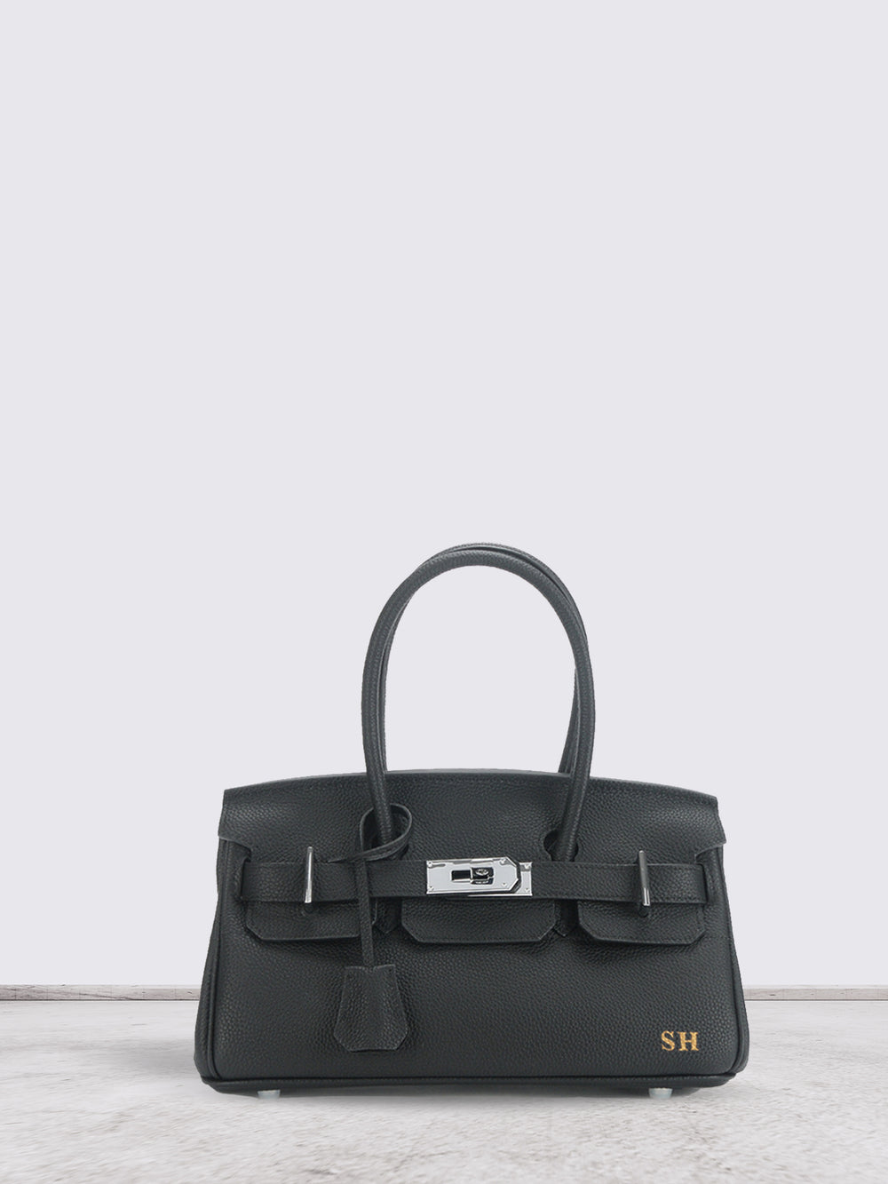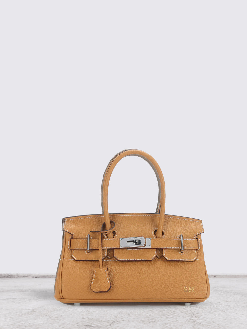 • التخصيص: أضف الأحرف الأولى من اسمك أو اسمك الكامل مرسومًا يدويًا مباشرة على الجلد بأسلوب فني أنيق، مما يجعل كل حقيبة فريدة من نوعها.