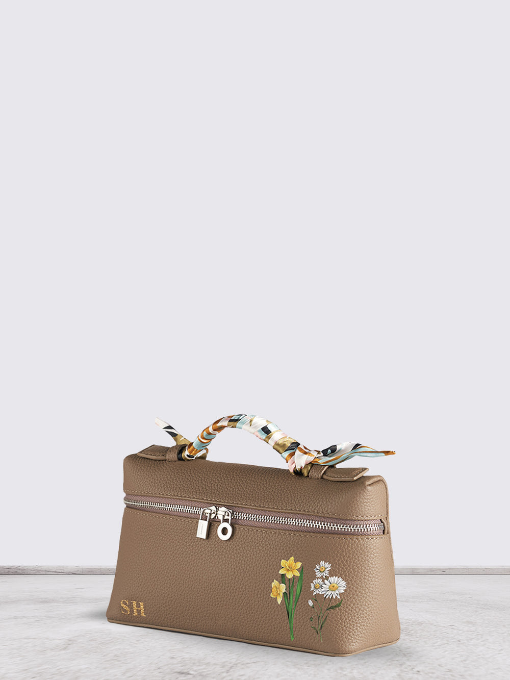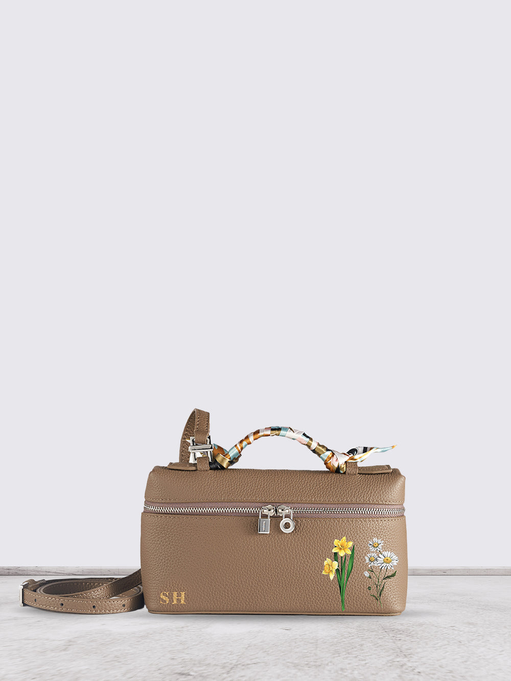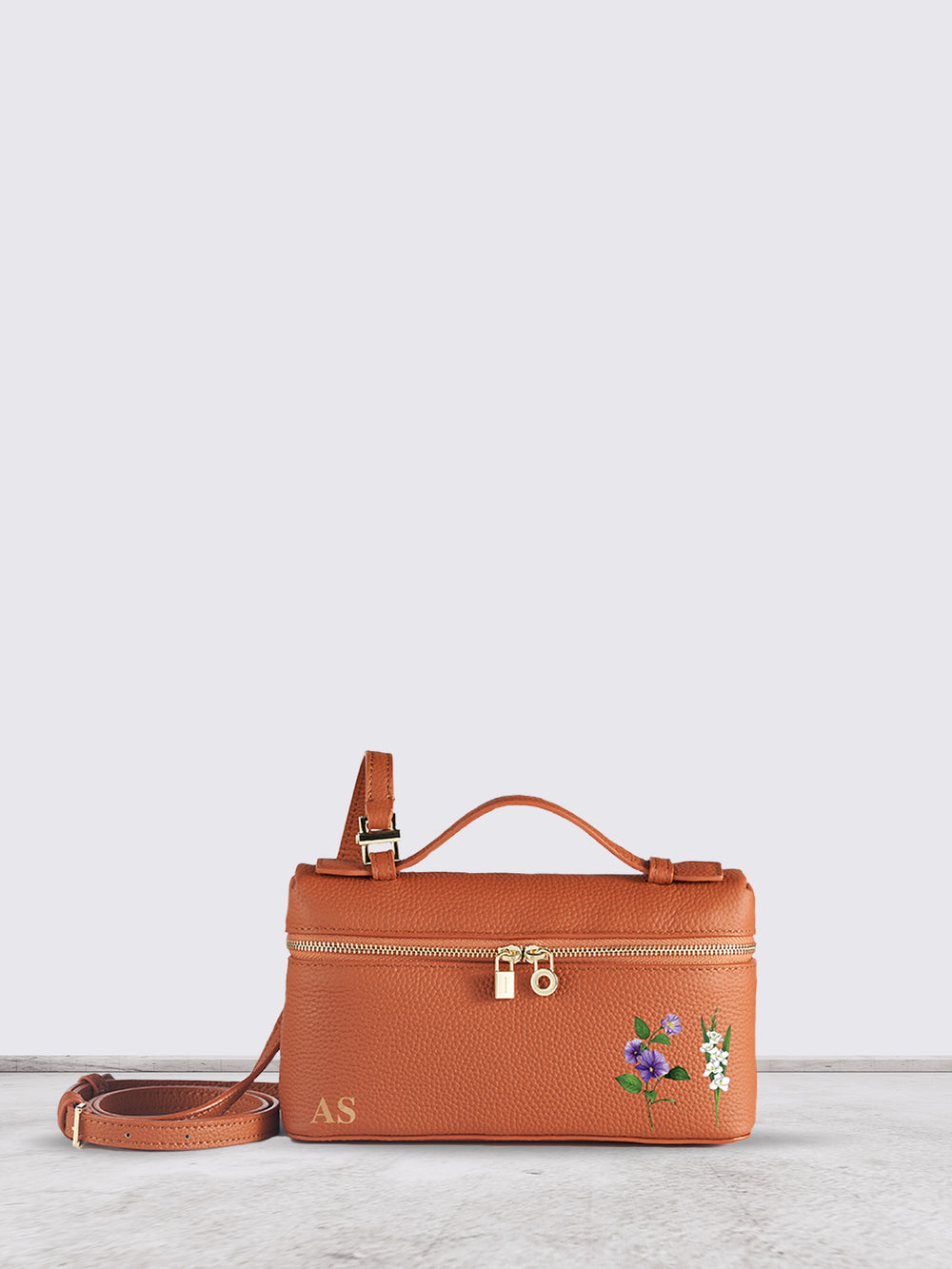 Crafted from premium genuine leather, this versatile piece transitions effortlessly between a refined handbag and a comfortable crossbody. Designed for daily wear, yet elevated with delicate embroidered flowers — customizable for one or two names.