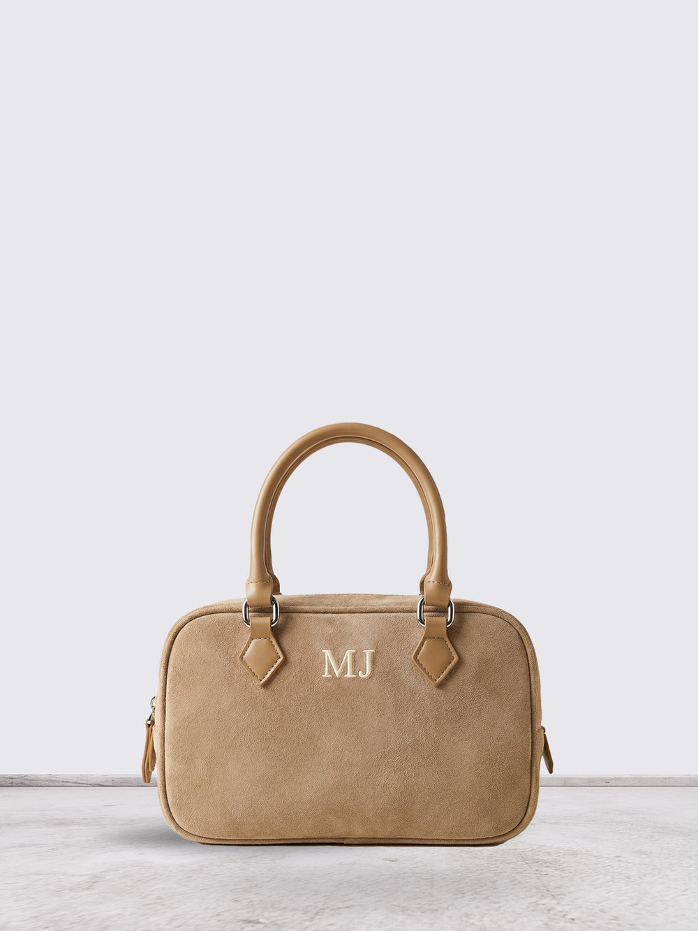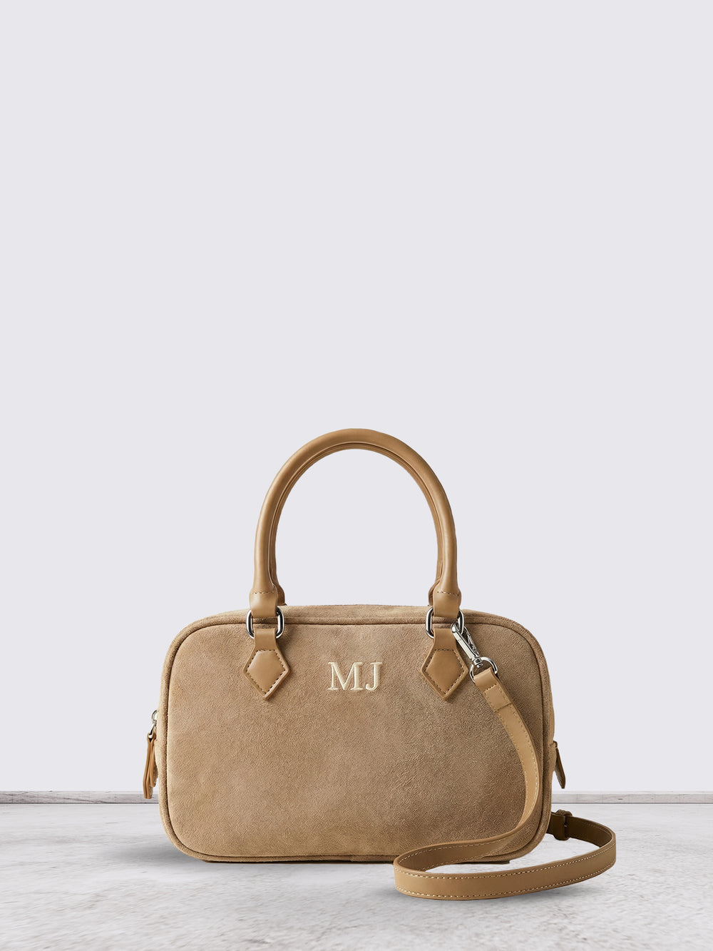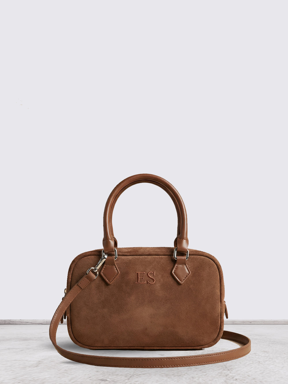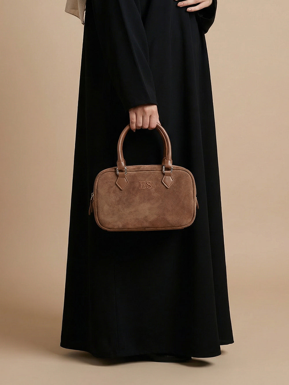 Inspired by the grace of the Arabian gazelle, the Reem Suede Mini embodies softness, refinement, and quiet confidence.