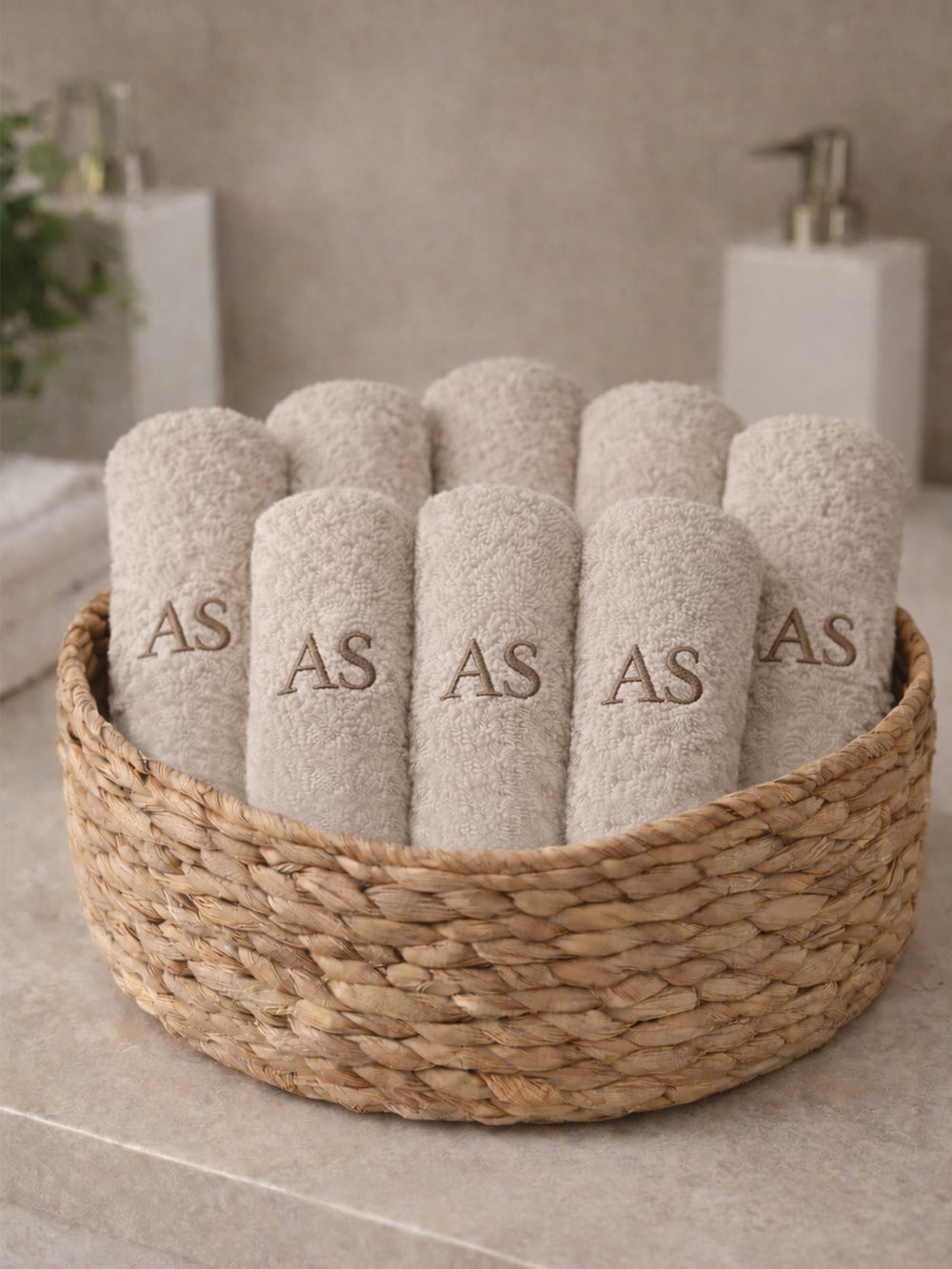 Each towel can be customized with embroidery upon request, allowing you to add initials, names, or a meaningful word for a personalized and luxurious touch.
